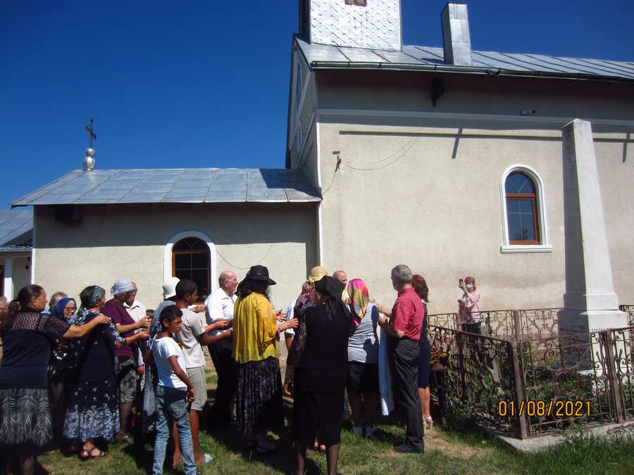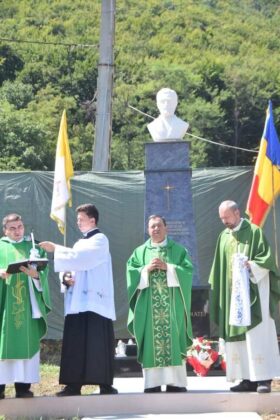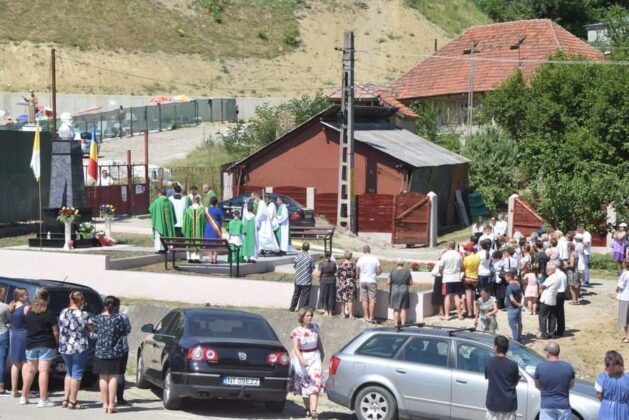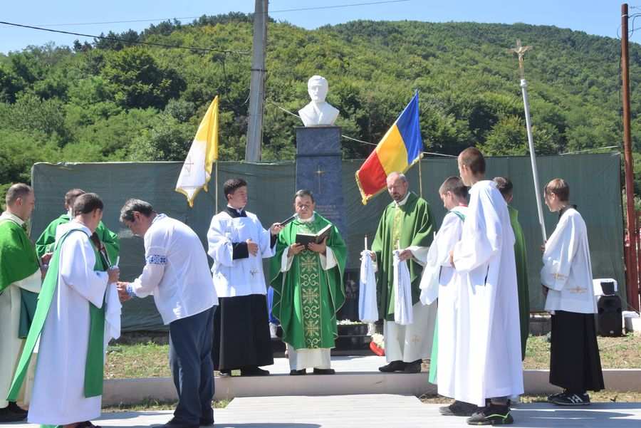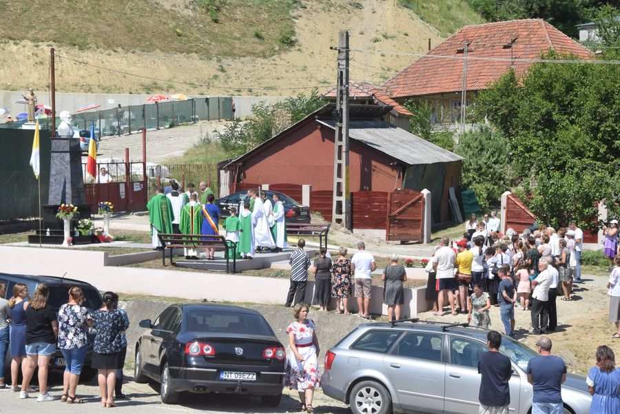 Îmbrăcați în port popular, unele piese vestimentare având o vechime de aproape 100 de ani, rudele preotului martir au participat la slujba de pomenire, alături de restul localnicilor și de trecătorii aflați în preajmă. La finalul slujbei, un avion a împrăștiant din zbor, peste monument și mulțimea de oameni adunată, petale de trandafiri, în cinstea preotului martir.