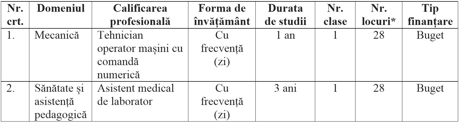 * numărul de locuri acordat prin Ordinul Ministrului Educației nr. 3845/26.05.2021