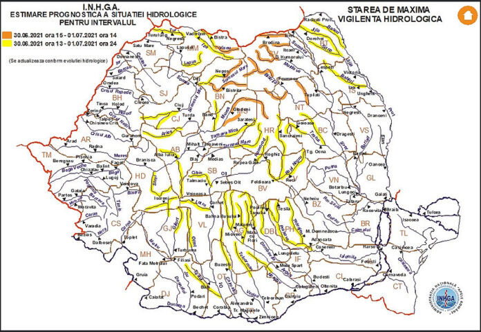 În intervalul 30.06.2021 ora 15:00 – 01.07.2021 ora 14:00 pe râurile din bazinul hidrografic:
