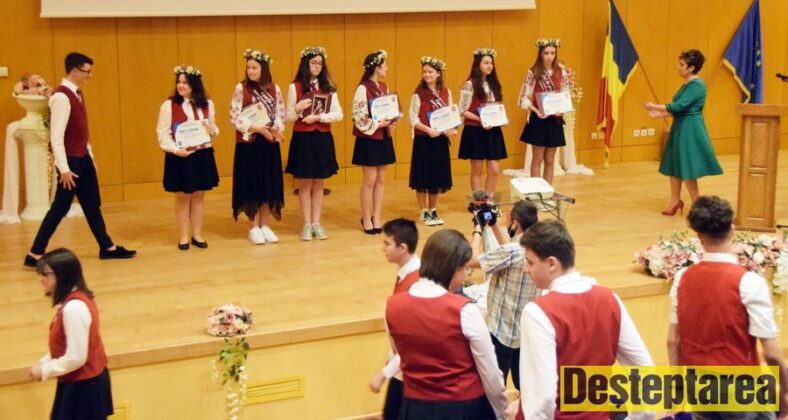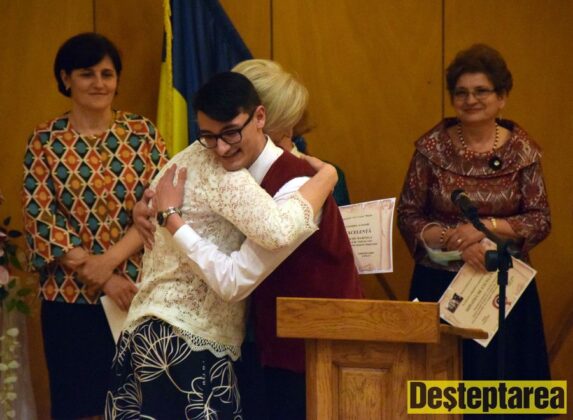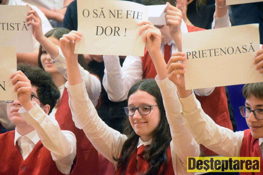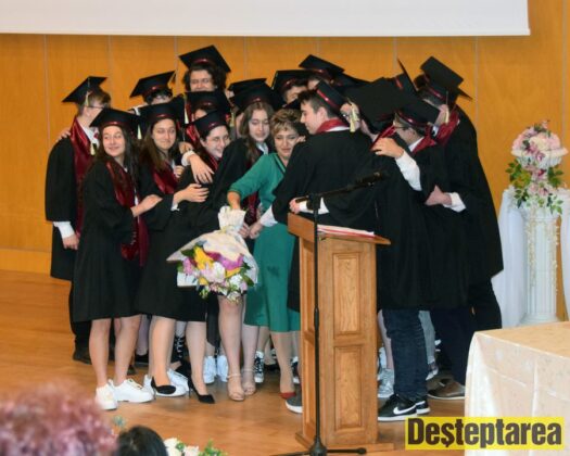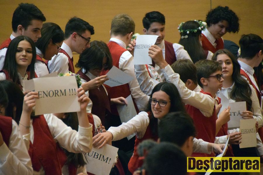 Pe acordurile celor de la Chainsmokers și Coldplay, curgeau imagini, curgeau amintiri, curgeau vorbele doamnei diriginte. Și mai curgea și câte o lacrimă.. Noi- mici, noi-mari, ore de curs, aniversări, excursii, vizite, spectacole, sultani și cadâne, părinți și bunici, târguri de legume, domnitorul Alexandru Cuza și domnița Elena Cuza, interviuri TV, festivități de premiere, acțiuni caritabile, tot ce poate strânge mai bun un elev vreme de nouă ani. La o așa poveste, o așa oglindă! Prin urmare, când fluturașii și-au luat zborul din catalog, am urcat din nou pe scenă, fiecare cu câte o coală de hârtie având un cuvânt sau un text diferit, iar toate, la un loc, compuneau un lung mesaj de mulțumire adresat celei care ne-a fost și mamă, și dascăl, și….Doamnei diriginte i-a mers la inimă mesajul.