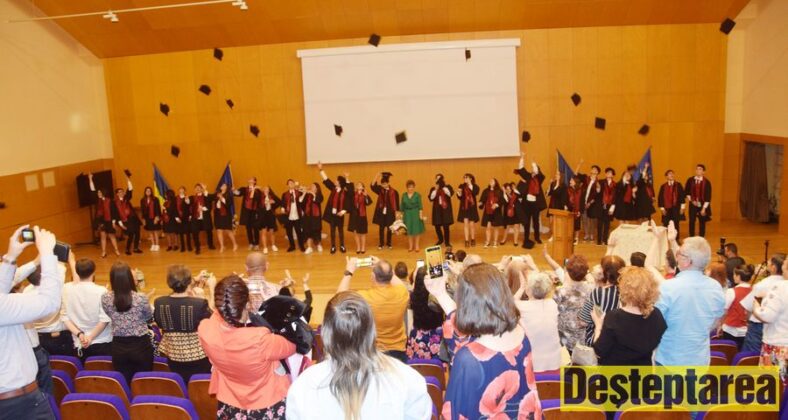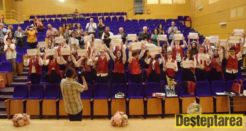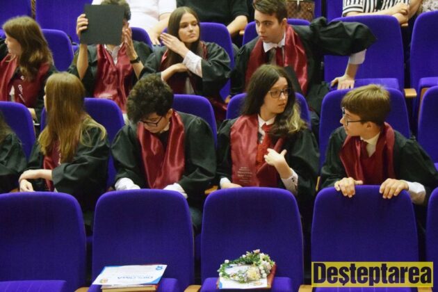 Iar această zi a fost 10 iunie. Bun, am știut de la început că va fi o zi specială; doar era ziua Cursului Festiv! Dar nu ne-am putut imagina nicio clipă cât de specială avea să fie cu adevărat. Ca să vă faceți o idee, probabil că ecourile lui Gaudeamus Igitur, cântat de noi mai tare și mai clar ca oricând continuă să se audă și acum în sala Centrului de Afaceri. Cel puțin așa credem noi. „Să credeți în voi!”, ne-a spus doamna profesoară Marinela Potîrniche, care s-a dovedit a fi, o dată în plus, un maestru de ceremonii perfect. Aveam pregătite diplome pentru fiecare dascăl în parte. Cu dedicații scrise care mai sobre, care mai hazlii, dar niciuna de conveniență, cum se întâmplă uneori în astfel de momente. Nu! Toate sincere, izvorâte din adâncul sufletelor noastre. Doamna director Doinița Sârbu ne-a vorbit despre emoții. Iar doamna director-adjunct Cornelia Iștoc despre cât de mici ne-a cunoscut prima oară și despre cât de mari am devenit între timp. Doamna Anca Sereș nu a putut vorbi. Lacrimile i-au înecat discursul.