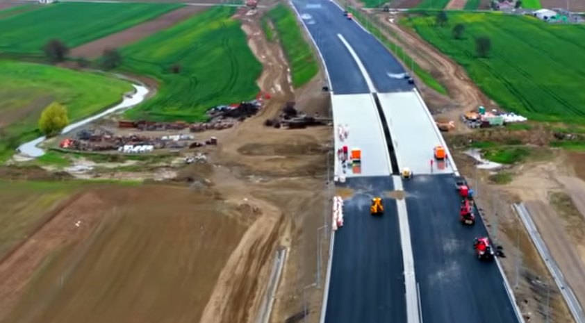 Filmare spectaculoasă cu drona surprinde lucrările la Autostrada Moldovei A7 în zona Domnești, unde se ridică pasajul peste DN2 E85 și magistrala de cale ferată, pe traseul Focșani–Bacău.