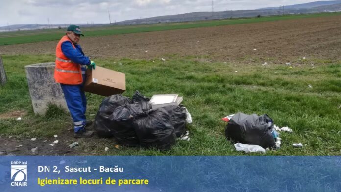 Numai în această săptămână, pe traseul amintit, lucrătorii SDN Bacău au colectat aproximativ 11 mc (aprox. 4,4 tone) de deșeuri mixte, aruncate de conducătorii auto și de riverani direct pe marginea drumului național.