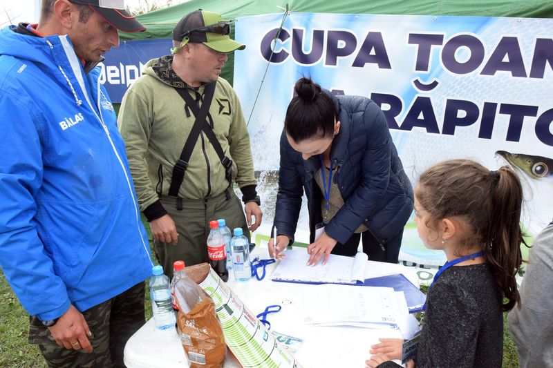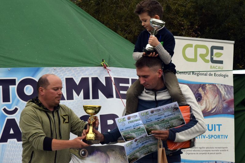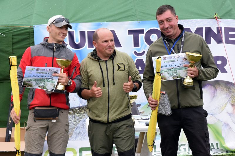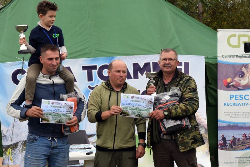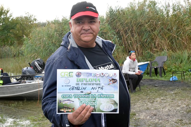 Îmi arată pe telefon, un ditamai somnul, pe care abia îl putea ține. „Am prins știucă aici și de 12 kg! Anul trecut am prins 6 bucăți, de 8 kg. Îmi place să pescuiesc la răpitor. Dar a început să-mi placă și la staționar. Pun barca cu botul în stuf, și stau…” Este bunic. Din toată familia, numai nepoțica, elevă în clasa a II-a, îi moștenește pasiunea. Să-i amintesc și pe arbitrii din a doua barcă: George Chiriac și Bogdan Ilcov. Cătălin Tănase a arbitrat de pe mal.