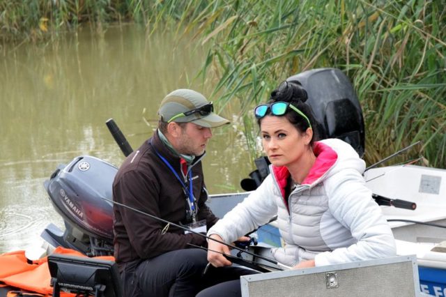 În lista cu cei înscriși în competiție, apare un singur perenume de gen feminin: Anca! Împreună cu soțul, Ștefan Victor Geangalău, participă de ani buni la concursuri de acest gen: „Pescuiesc de mult timp. Dar așa, mai serios, chiar nu am stat niciodată să mă gândesc de când. Nu, nu a fost o provocare din partea soțului. Chemarea a fost și de o parte și de alta. Ne-am întâlnit la mijloc, cu aceeași pasiune. Acum pescuim împreună. La ultima competiție, la Rogojești (acumulare pe Siret, în Bucovina), am avut cea mai mare captură, 114 cm. A fost captura record la toate concursurile de spining, la nivel național. Anterior am avut, tot la știucă, 98 de cm. Avem un băiețel. E mic! Un an și jumătate. A trebuit să-l lăsăm acasă. Dar abia așteptăm să mai crească, să-l luăm cu noi. Acum am prins doar 4 bibani. Nu credem că ajungem pe podium. Dar ne-am distrat!”