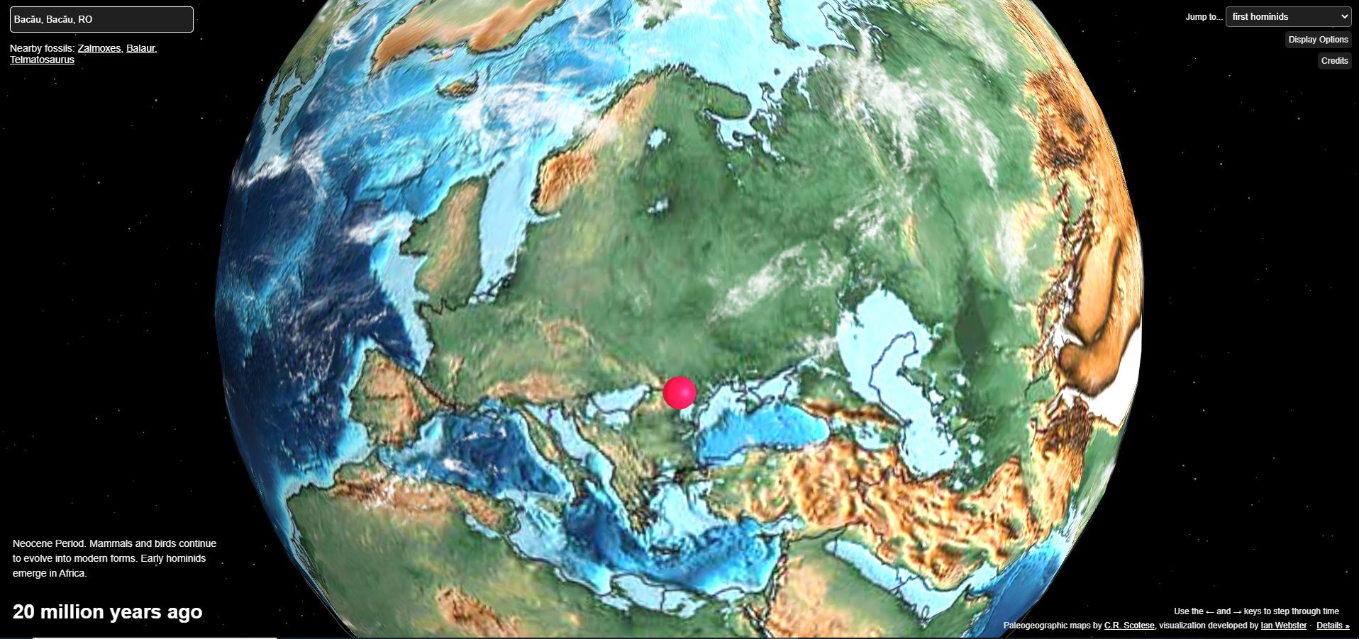 Harta online, proiectată de Ian Webster, oferă o serie de instrumente care facilitează descoperirea mai ușoară a Pământului, cum ar fi locul în care au trăit primele reptile sau când a înflorit prima floare.