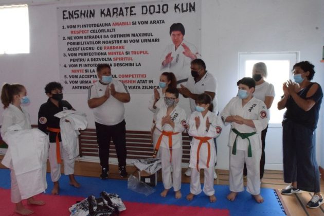 Clara Oana Iojă este președinta Clubului „Sabaki Wolf Enshin Karate”, înființat aici în urmă cu trei ani, prin forțele proprii ale părinților acestor copii talentați. La 21 de ani are mult de treabă: „Mă ocup cu pregătirea copiilor pentru diferite stagii: antrenament, înscriere la competiții, cupe, examene și ce mai avem noi pe aici. Pregătirea presupune efectuarea exercițiilor, antrenamentelor, seriozitatea, educația, respectul… Absolut orice ține de calitățile pe care trebuie să le aibă un sportiv, de la vârsta de 5 ani până la 100. Avem copii foarte ambițioși, cărora le place ceea ce fac.” Clara mai are puțin până la centura neagră. După un exercițiu demonstrativ sunt oferite cadourile.