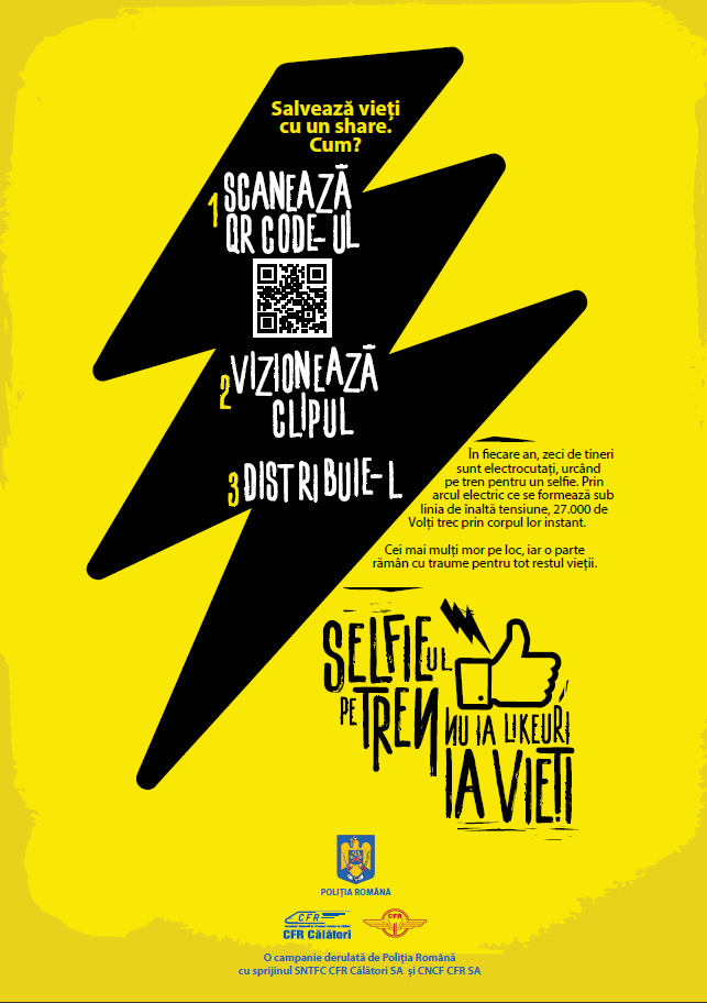Campania „Selfie-ul pe tren nu ia like-uri, ia vieți” se desfășoară la nivel național, în perioada 17 iulie 2020 – 31 ianuarie 2021, întru-un parteneriat între Poliția Română și CFR Călători, împreună cu Mercury 360, iar pe parcursul acesteia un vagon de călători personalizat cu însemnele campaniei (vizual și mesaj) va fi atașat trenurilor care circulă în țară, pentru a transmite mesajul preventiv.