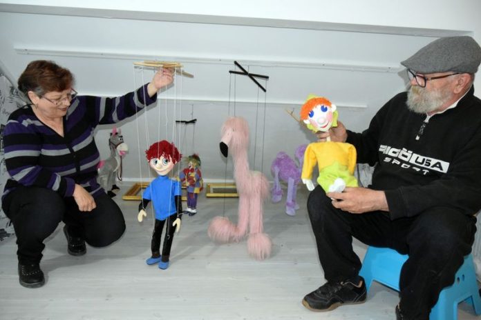 Genul acesta de oameni nu știe să se odihnească: „La clasa Artă decorativă am avut-o profesor pe doamna Pârlea. Soțul ei era profesor la Muzică. Acolo am învățat să fac măști decorative, din sfoară, din lână, tot felul de materiale, dar și tapiserii. Am avut și expoziții! Eu cu tapiserie, Edi cu sculptură, în holul Casei de Cultură, la Galeriile Alfa. Așa ne-am cunoscut mai bine, ne-am apropiat. Am învățat și eu să sculptez. De fapt asta este meseria mea. Sculptor de păpuși. Edi l-a avut ca profesor, el era la clasa de Sculptură, pe sculptorul Pinca. Împreună am realizat, apoi, peste douăzeci de scenografii, animând spectacolele de teatru pentru copii.” Cafeaua se răcește. E dificil să-mi ridic masca și să sorb din ea. Stăm de vorbă pe o mica terasă, feriți de vânt. „Cum m-am îndrăgostit eu de păpușărie? Ducându-mă la teatrul de păpuși! Aveam o colegă, a cărei unchi era actor păpușar. Am intrat în spatele scenei și am văzut toată munca actorilor de acolo. Tot efortul lor. Toate păpușile acelea frumoase. Și măștile! Și costumele! Mi-am zis că asta vreau să fac. Să lucrez acolo. Abia terminasem liceul. Visul mi s-a împlinit! Dar nu atunci. Pe parcurs. După ce a fost un post liber și s-a scos la concurs. Așa mi-am început cariera de sculptor de păpuși, în atelierul din vechea clădire din Bacău, astăzi dărăpănată, a Teatrului de Păpuși, situată pe B-dul Uniri, nr. 7-9.” Intervine și Eduard cu o precizare: „A fost singurul teatru, cel puțin din Moldova, dacă nu din țară, care avea scenă culisantă. Cobora și se ridica acționată electromecanic. Actorii erau ridicați și coborau, în funcție de scenariu, în spatele păpușilor care rămâneau pe scenă. Adică nu mai aveau nevoie, de acel paravan, care să îi ascundă de privirile spectatorilor.”