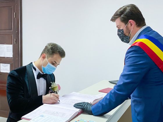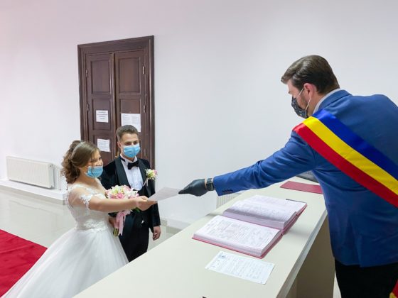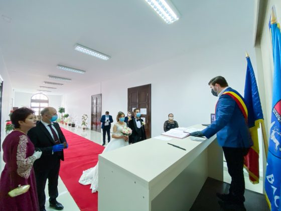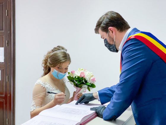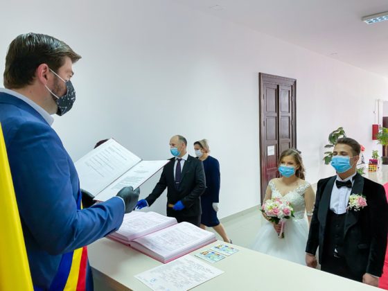 Doi tineri băcăuani și-au unit destinele, astăzi. Ceremonia a avut loc, conform reglementărilor actuale, în prezența a doar câteva persoane și a fost oficiată de primarul municipiului Bacău, Cosmin Necula.