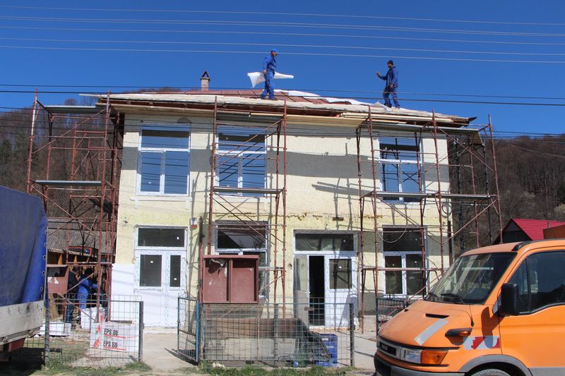 Pentru a crește performanța energetică a clădirii atât pe perioada iernii, cât și pe caniculă, s-a impus executarea unei izolații termice la pereții exteriori și înlocuirea ferestrelor și ușilor cu altele mai performante energetic, respectiv tâmplărie PVC cu geam termopan. Se vor executa și tencuieli exterioare decorative, iar la interior se va ridica, la parter, un perete de cărămidă pentru camera centralei existente. Tot la interior, atât la parter, cât și la etaj, se vor executa reparații de tencuieli, se va zugrăvi, acoperișul va fi schimbat cu țiglele metalice Lindab, ce se montează în sistem ventilat, pe structuri de șipci și contrașipci. Totodată, se va turna și trotuar în față din beton pe un strat de balast. Valoarea contractului este de circa 170.000 de lei.