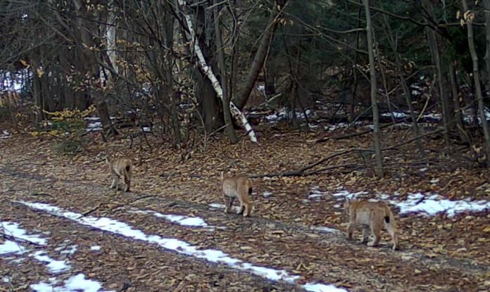 Imagini rare cu o femelă râs și trei pui, surprinse în pădurile din Bacău