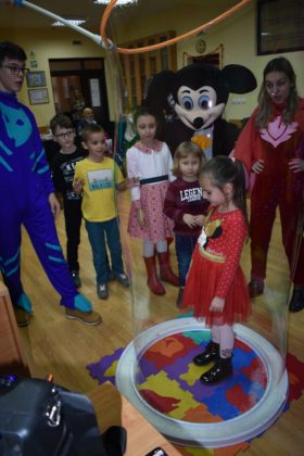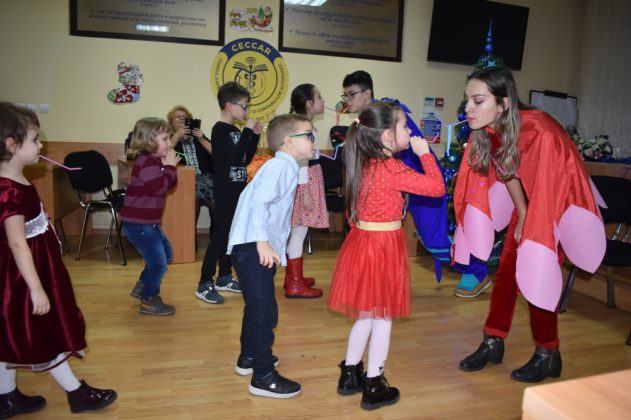Sacul Moșului nu s-a descărcat până când fiecare copil nu i-a spus o poezie și până nu și-a declinat pasiunile pe care le are. Ce a urmat a fost o sărbătoare în jurul Pomului de Iarnă, cu muzică și jocuri, dar și concursuri antrenante.