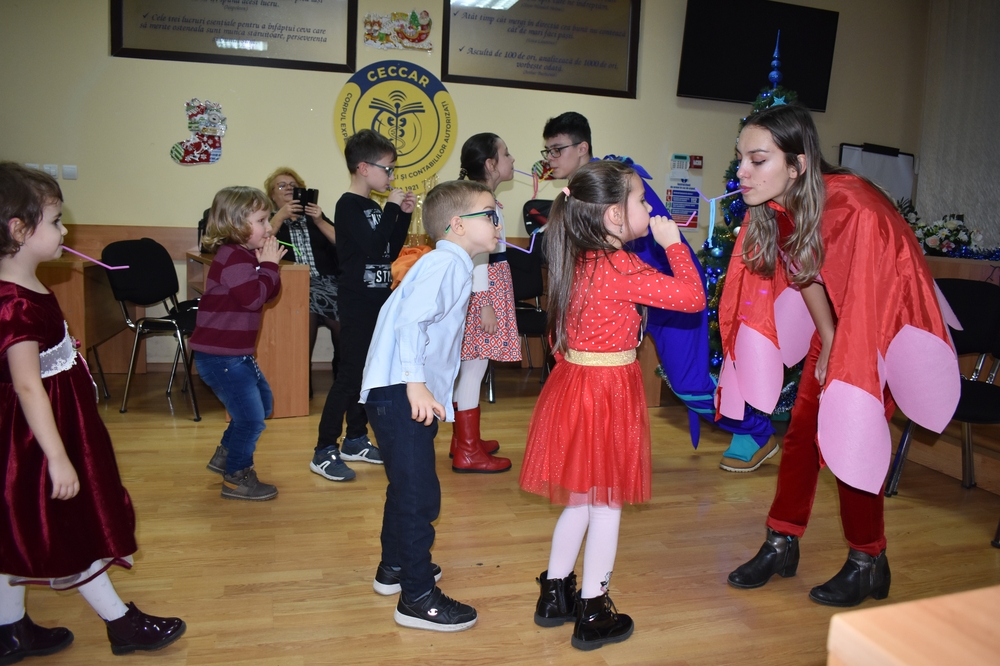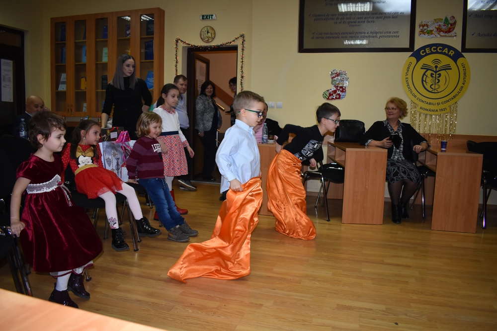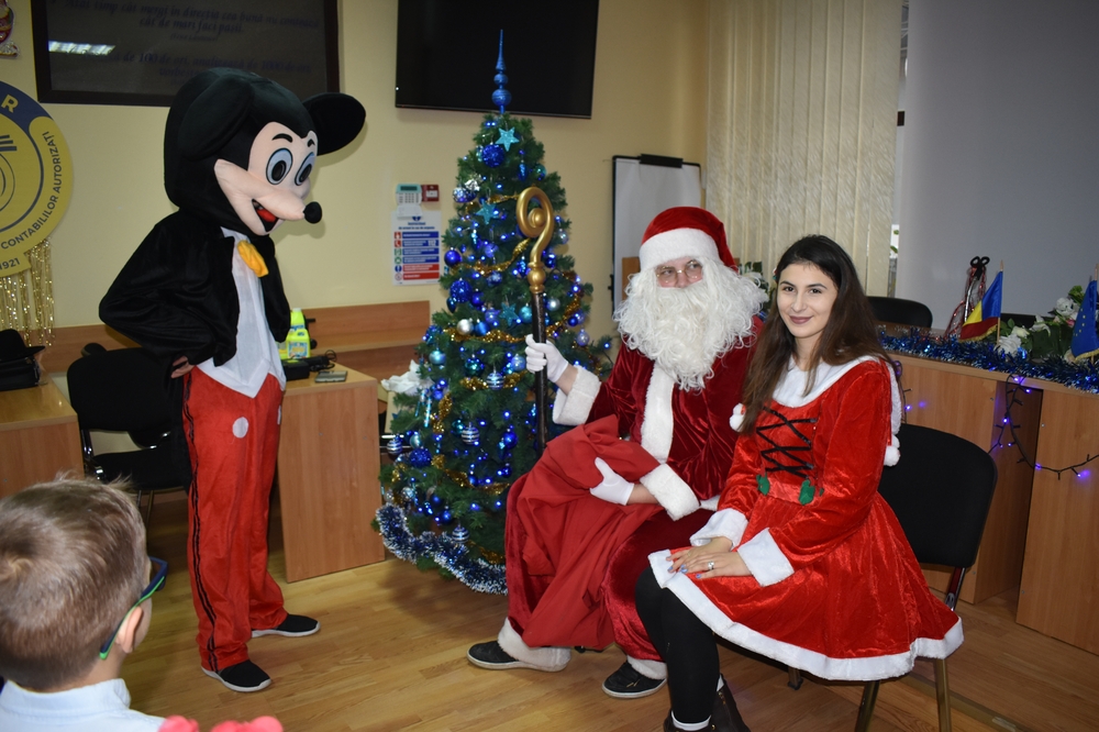 L-au așteptat, ca în fiecare an, cu nerăbdare și cu ochii mari, copiii profesioniștilor contabili, dar și părinții lor și bunicii. Gazde au fost chiar membrii conducerii filialei.Alături de Moșul au venit, însă, spre bucuria multor participanți, și o superbă Crăciuniță, dar și Motanul Jerry și șoricelul Mickey, dar și Bufnița cea Înțeleaptă.