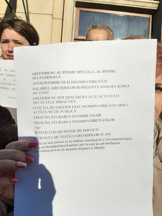 Protestatarii amenință cu blocarea integrală a sistemului „dacă proiectul de lege va ajunge la vot final în plen și va conduce la abrogarea pensiilor de serviciu ale personalului auxiliar de specialitate (grefieri)”. „Prima dată am avertizat, astăzi garantăm! Justiția nu se poate înfăptui fără grefieri!, transmit protestatarii.