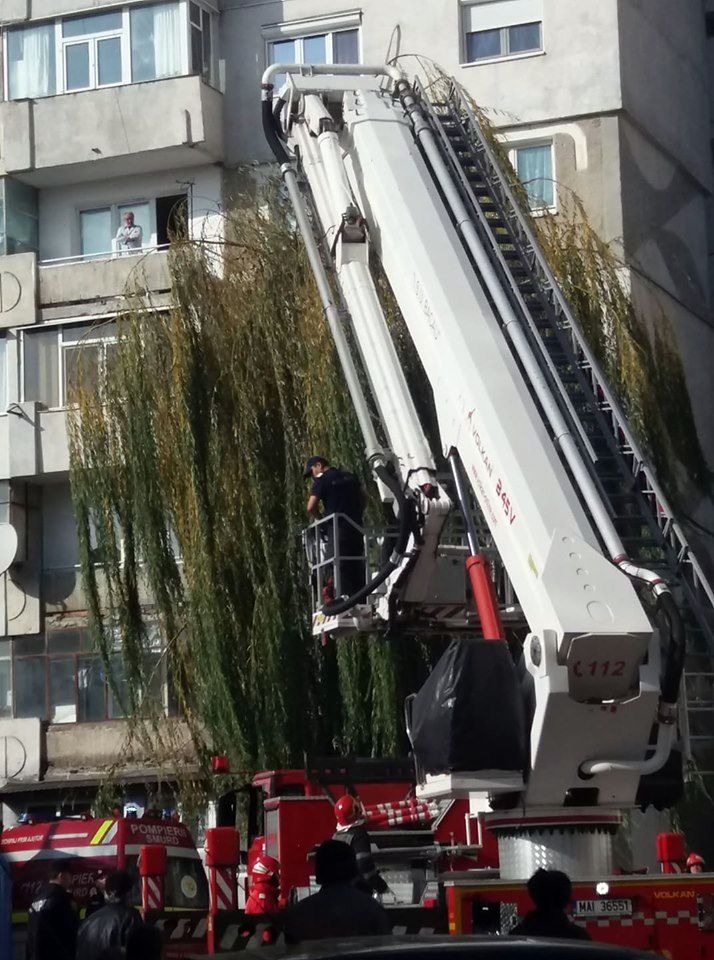 „Femeia se afla la etajul opt al blocului. După cum știți, străzile din cartier sunt înguste și se pătrunde greu pe ele. În plus, se mai și lucrează, făcându-se săpături. A fost mai dificil să se caleze platforma pe carosabil, ca să putem interveni în siguranță.