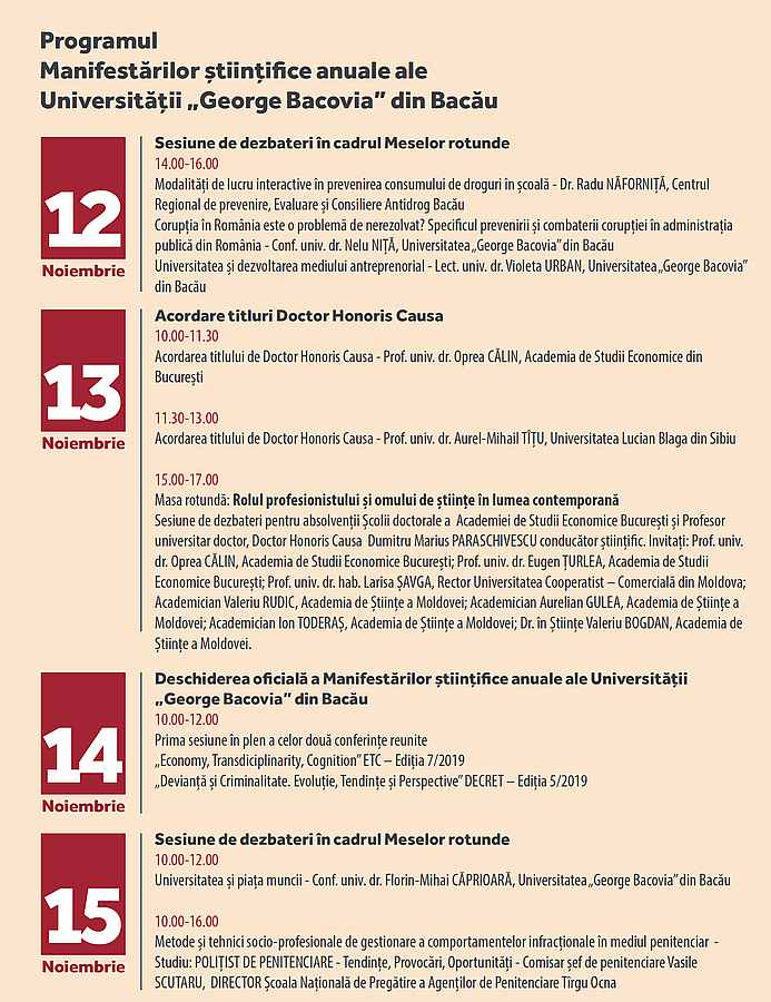 – Iar joi, 14 noiembrie, va fi ziua în care se deschid oficial lucrările congresului, pentru ca apoi să fie prezentări științifice.