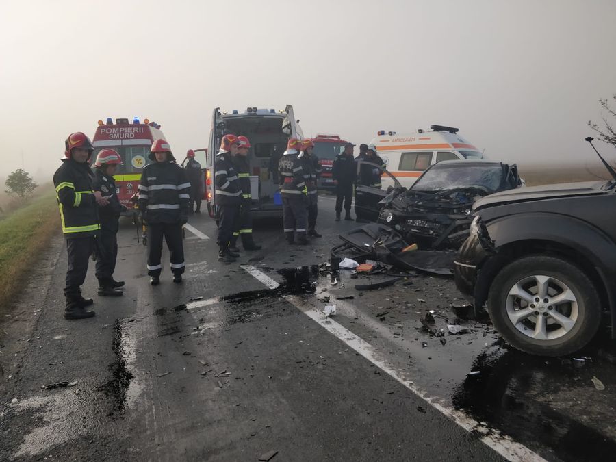 Din primele informații reiese că accidentul s-a petrecut în timp ce una dintre mașini încerca să facă o depășire iar vizibilitatea era redusă din cauza ceții.