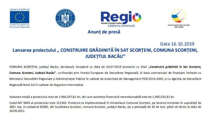„Ca urmare a rectificării bugetare aprobată în ședința de Guvern de luni, 14 octombrie 2019, Unității Administrativ Teritoriale Onești i-a fost alocată suma de 9,35 milioane de lei.