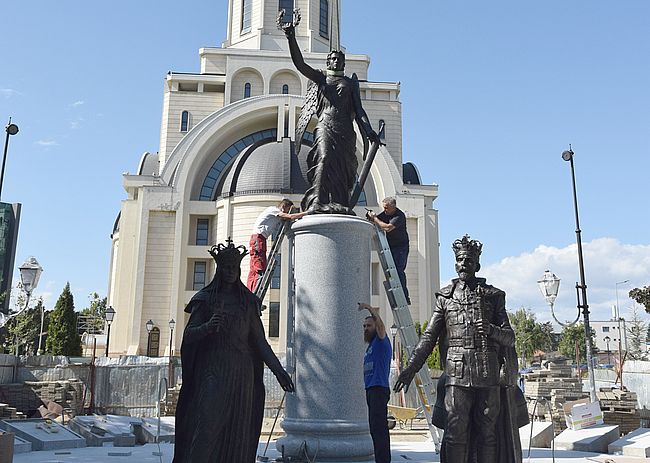 „Este un monument unic în ţară de o asemenea anvergură şi concepţie, singurul din granit cu această înălţime, care îi reprezintă pe cei doi monarhi, alături. Este un monument nu numai pentru astăzi, ci şi pentru generaţiile viitoare. A costat 500.000 de euro şi este finanţat de compania DEDEMAN.