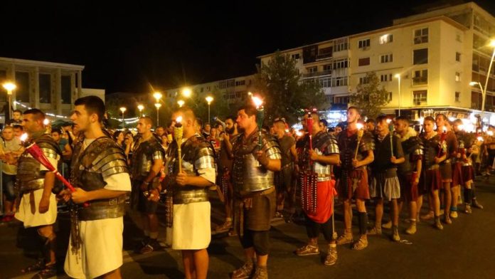 Până atunci, trupele de daci şi de romani, aproximativ 200 de combatanţi, cu tot echipamentul şi însemnele de identificare, din Bulgaria, Cluj, Argeş, Alba Iulia şi Baia Mare, denumite sugestiv Terra Dacica Aeterna, Garda Apulum, Historia Renascita, Omnis Barbaria, Legia Italica, au ţinut să salute gazdele şi pe băcăuani, printr-o paradă cu torţe, pe traseul Catedrala „Înălţarea Domnului” – Piaţa Tricolorului.