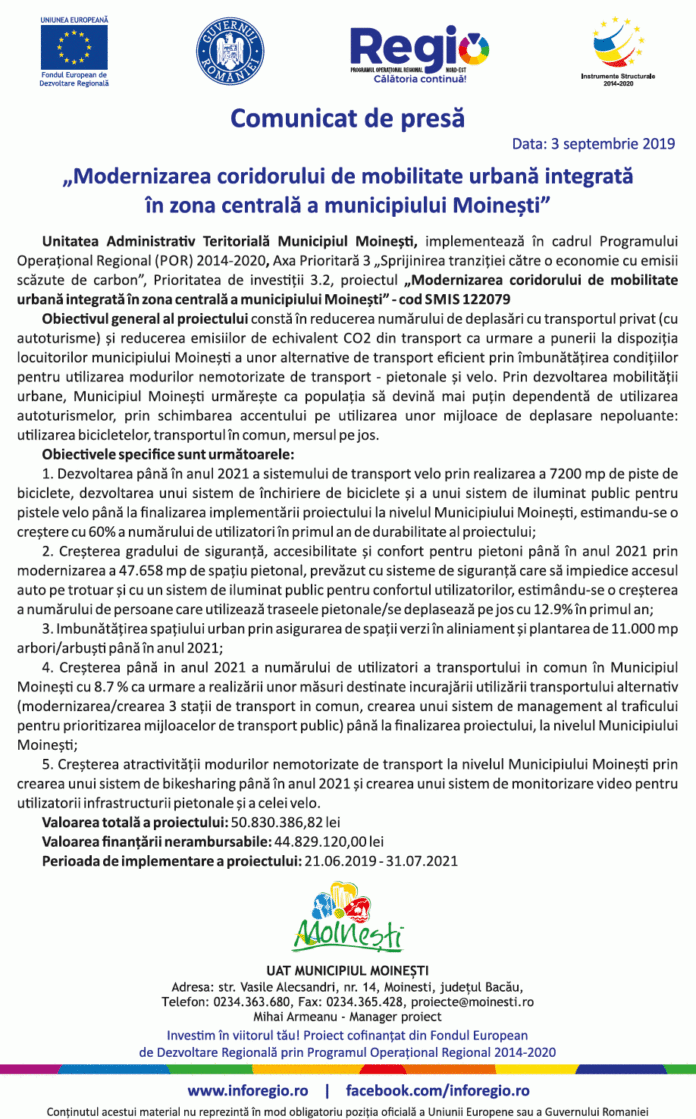 În municipiul Bacău, activitățile se vor desfășura la Filarmonica Mihail Jora, în data de 05 septembrie a.c.