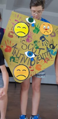 Atelierul s-a intitulat ,,Scut antiviolenţă”. În cadrul acestei intâlniri, cu ajutorul metodei didactice de joc de rol, copiii au înţeles că violenţa poate fi evitată folosind un ton ponderat şi o atitudine potrivită, copiii realizând un scut antiviolenţă ca un simbol a celor învăţate.