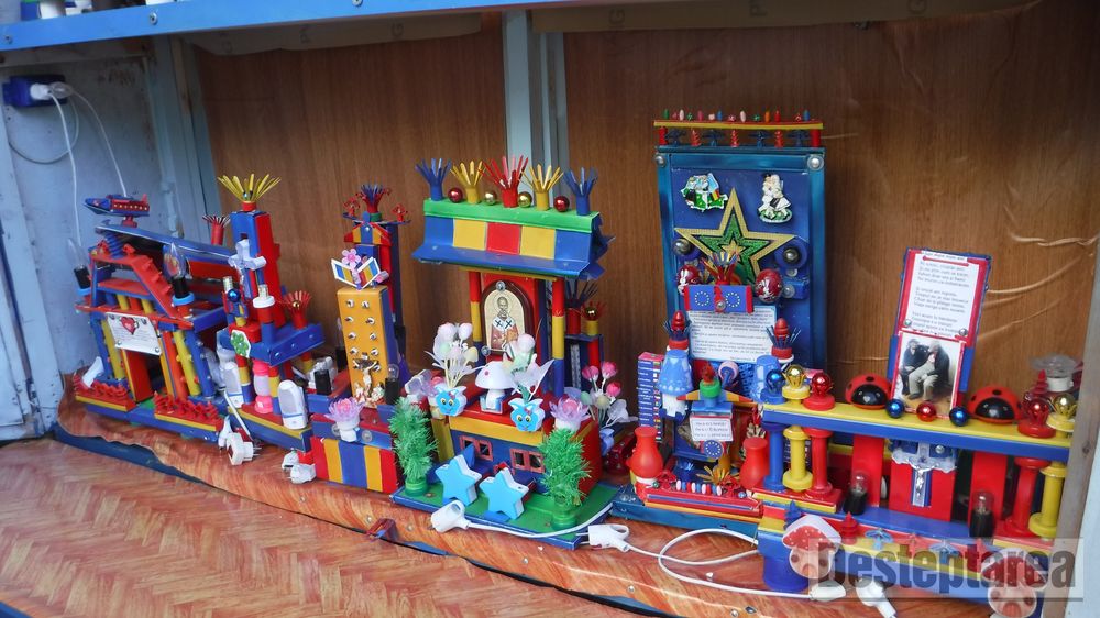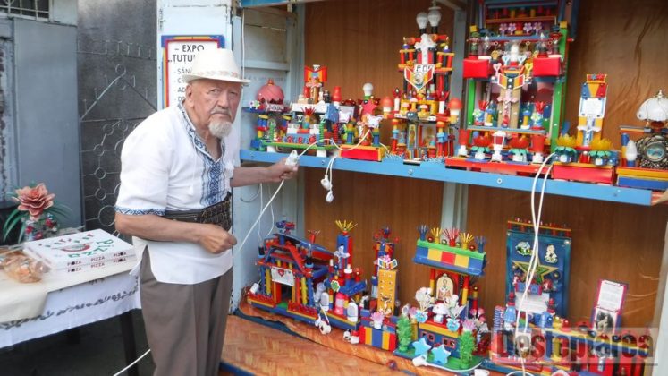 Aurel Ţuţuianu nu este pictor, nu este sculptor, cu toate că lucrările lui au ceva şi din această artă. O arată cele peste 20 de lucrări, doar atâtea au încăput în expoziţia în aer liber, celelalte, unele de dimensiuni mai mari, au rămas în casă. Fiecare exponat este însoţit de un mesaj în versuri, de altfel, domnul Ţuţuianu este şi poet, prozator, scrie cu talent, cu ironie, cu dragoste, despre viaţă, credinţă, ţară, chiar şi despre politică. Îi place politica, dar cel mai mult l-a interesat istoria Ţării mari, ştie şi ţine să comunice parcursul adevărat al ţării pe care o iubeşte foarte mult. Este un patriot, se vede şi din conţinutul şi mesajul lucrărilor lui, fiecare are încrustat tricolorul, stema, hărţi, simboluri sacre ale istoriei României. Toate sunt executate cu migală, în multe ore de muncă, de nesomn („Se culcă doar pe la patru dimineaţa, îl aud cum stinge lumina şi se aşează în pat”, spune o vecină), cu mici fierăstraie, dălţi, foarfeci, şuruburi, şurubelniţe, lemn fin, carton, foi subţiri de tablă, becuri, toate, dar absolut toate conţin câte ceva din mesajele pe care le-am enunţat la început. „Sunt unicate, nu seamănă unul cu altul, nimeni nu a mai făcut aşa ceva. Multe, pe lângă mesajul vizual, idee, conţinut, realizare, conţin şi câte un mesaj scris, cu sfaturi, pilde, rugăciuni”, explică asistenţei artistul de pe Bucovinei 4.