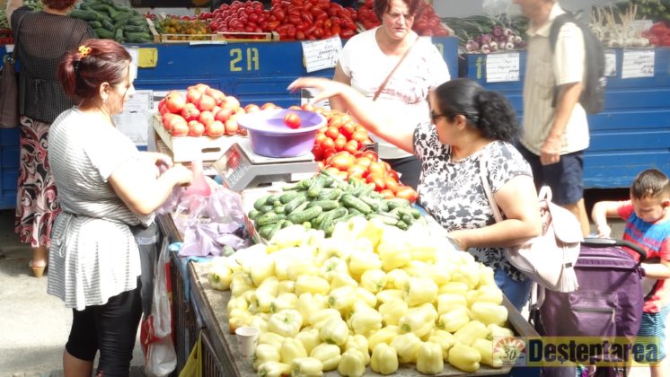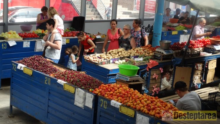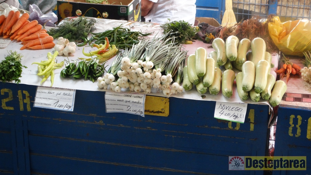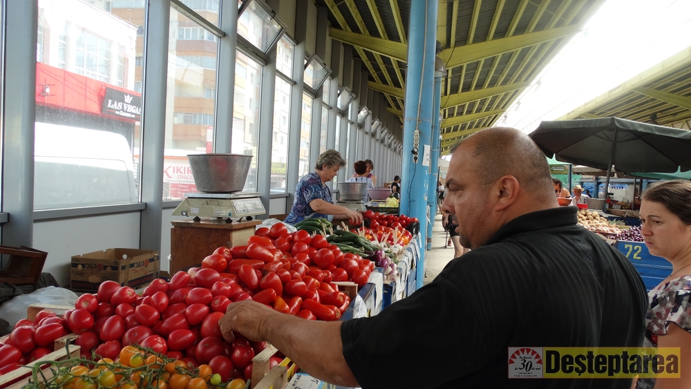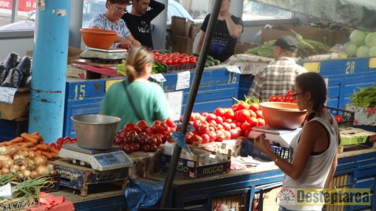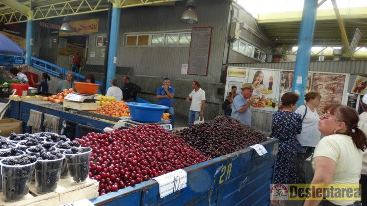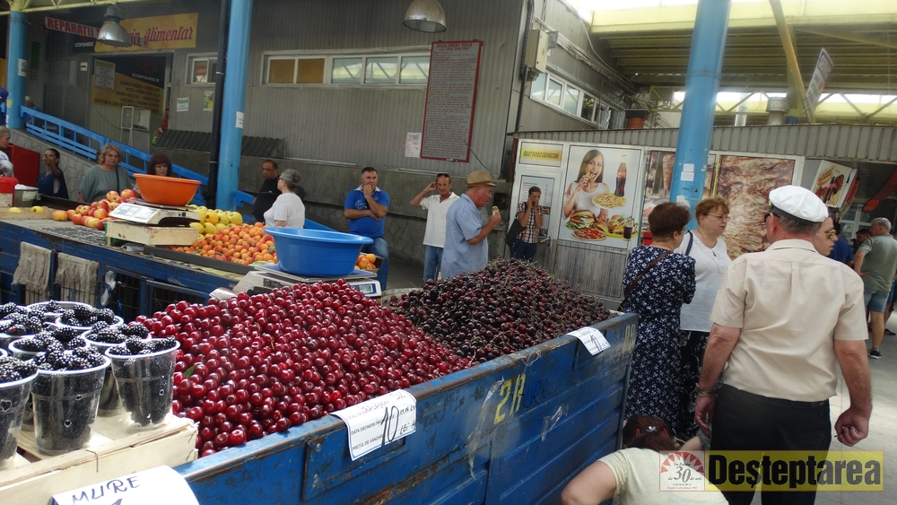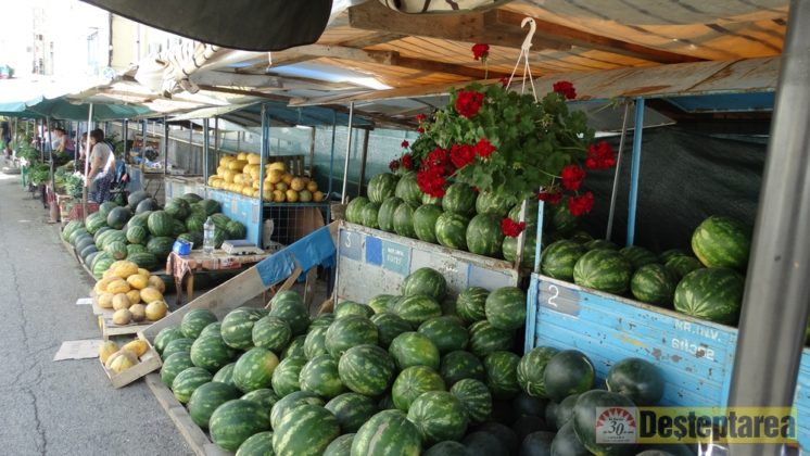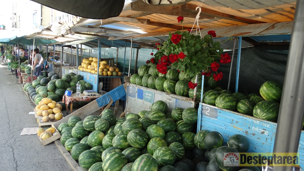Povestea celor două precupețe din Galați ar fi putut să ocupe cel puțin două pagini de ziar. Noi ne oprim aici și încercăm să luăm mai departe pulsul pieții. Tot pe aleea de pepeni, alte doamne și domnișoare vând tot felul de răsaduri. De la vinete și ardei iuți la ardei grași, gogoșari și țeline. Vânzătoarele se cam plâng că nu cumpără lumea, că oamenii vor totul de-a gata. Așa o fi, că nu degeaba stau zi de zi în piață. Apoi, dăm fuga printre tarabe. Piața e plină de „de toate”. Roșii, ardei, ceapă și cam tot ce ți-ai putea dori. Toată marfă românească. Și dăm iar de pepeni. Scrie mare pe ei: „Pepeni de Dăbuleni f.f. dulci”. „Chiar sunt de Dăbuleni”, încercă să mă convingă un vânzător care se uită cam lung la noi și la aparatul de fotografiat. Așadar, pepenii de Dăbuleni sunt la 1,9 lei kilogramul. În rest, fructe de sezon. Caise la 6,5 lei kg, vișine cu 8 lei, cireșe între 7 și 10 lei și zmeură cu 3 lei caserola. Dacă ești pofticios și nu ai bani în buzunar, mai bine stai acasă. În drumul printre tarabe am zărit și porumbul de fiert la 1,5 lei bucata.
