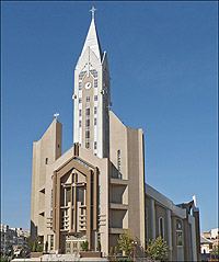 Este o construcţie frumoasă ce domină centrul Bacăului prin măreţia şi înălţimea sa. Biserica a fost sfinţită la 20 noiembrie 2005 de Episcopul Petru Gherghel. Ea are o formă neconvenţională de 66×44, iar înălţimea de 70 m cu o suprafaţă utilă de 1300 mp şi cu 1.050 locuri pe scaune; 52 m lungime, 44 m lăţime, 77 m înălţime, cu tot cu crucea din turn. Are două etaje, cu o cupolă imensă ce dă o strălucire deosebită interiorului bisericii, fără niciun stâlp central de susţinere. Altarul bisericii este încadrat în semicerc de un grup statuar format din şapte sfinţi, centrală fiind statuia lui Isus Cristos. Un loc deosebit îl ocupă statuile celor doi sfinţi patroni ai lăcaşului de cult, sfinţii Petru şi Paul.