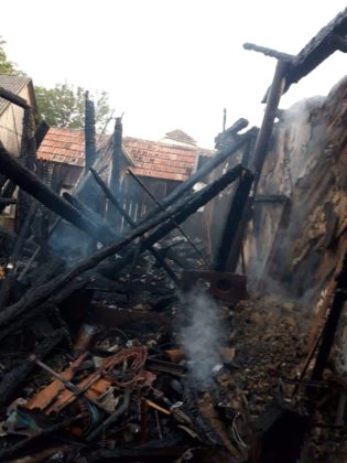 O locuință și un adăpost de animale au fost distruse, astăzi, de un incendiu, la Mănăstirea Cașin, în județul Bacău.