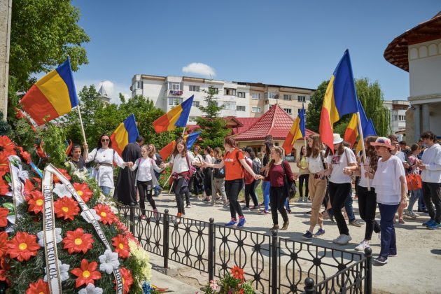 Zeci de români au pătruns, joi, cu forța, în cimitirul eroilor din Valea Uzului, unde maghiarii au făcut un lanț uman.