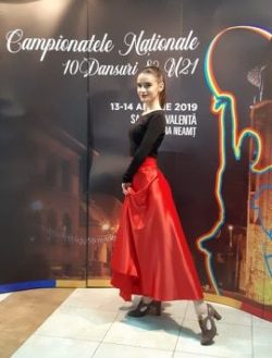 „De ce îmi place dansul? Nu știu să răspund decât că pentru mine e pasiune pură, reprezintă locul unde mintea mea se detașează de toată grija, locul unde inima vibrează în ritmul muzicii, acolo unde simți că plutești și unde îți găsești împlinirea personală. Mă bucur în același timp că am găsit și locul și oamenii cu care să împărtășesc aceeași pasiune. Adamas pentru mine reprezintă profesionalism, un standard în dans și un loc unde mă pot dezvolta. Am găsit aici oameni foarte implicați și cu o adevărată dăruire în ceea ce fac, instructori talentați și care transmit mai departe din pasiunea lor. Cum m-am simțit pe scena de la Piatra Neamț? Nu știu dacă se poate transmite în cuvinte toată emoția, alături de întreg mixul de sentimente: entuziasm, bucurie, concentrare și maximă atenție la fiecare pas, dar cred că cel mai mult am simțit apartenența la acest grup, încununarea tuturor orelor de repetiții împreună. Pentru noi care ne rupem câte o oră de 2 ori pe săptămână din programul zilnic supraîncărcat e cu adevărat o realizare fantastică.”