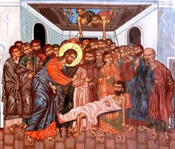 Sfânta Biserică Ortodoxă a rânduit ca în cea de a doua duminicădinPostul Mare să fie citită o pericopă evanghelică ce ilustrează, printr-una din multele vindecări săvârşite de Iisus, strânsa legătură ce există între suflet şi trup, dovedită de puterea curăţitoare de păcate a Mântuitorului, ca mijloc de eliberare de suferinţele trupeşti. Iisus vindecă un slăbănog din Capernaum, ce fusese adus în faţa sa de patru inşi pe o targă coborâtă prin acoperiş, într-un mod aparte: înainte de a-i oferi vindecarea propriu-zisă, îi spune paraliticului: „Îndrăzneşte, fiule! Iertate sunt păcatele tale!”. Mântuitorul îl însănătoşeşte pe cel bolnav de paralizie vindecându-i mai întâi sufletul, care era bolnav din cauza păcatelor nemărturisite şi neiertate, şiabia după aceea îi spune: “Scoală-te, ia-ţi patul şi mergi la casa ta”. Prin aceasta, Evanghelia evidenţiază legătura dintre păcat şi boală.