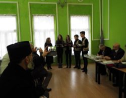 Un grup de elevi, sub îndrumarea profesoarei Gabriela Biea, din Moinești, au intonat colinde și cântece patriotice la deschiderea ședinței.