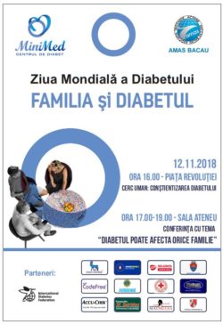 De Ziua Mondială a Diabetului, Centrul de Diabet MiniMed, împreună cu asociația nonguvernamentală AMAS (Asociația „Motivație, Acțiune, Succes”) Bacău, cărora li s-au alăturat Clubul Lions, Direcția de Sănătate Publică (DSP) și mai mulți voluntari, a organizat o acțiune inedită în centrul Bacăului. Pentru a atrage atenția trecătorilor asupra amenințării pe care această boală o reprezintă pentru sănătatea fiecăruia dintre noi, azi, la ora 16.00, în Piața Tricolorului, s-a format un Cerc uman și s-au baloane albastre, culoarea asociată diabetului.
