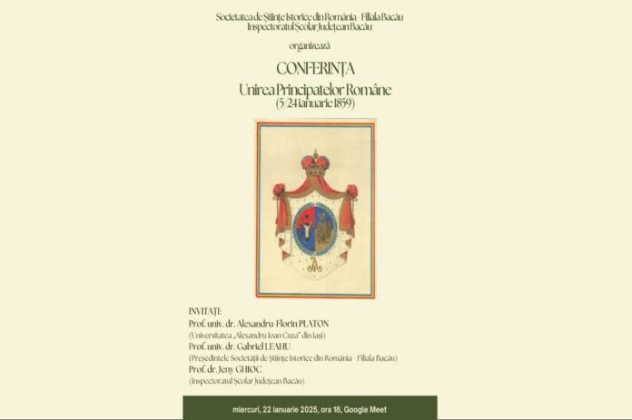 Societatea de Științe istorice din România – Filiala Bacău, președinte Prof. univ. dr. Gabriel Leahu, organizează o Conferință online dedicată Unirii Principatelor Române (5/24 ianuarie 1859).