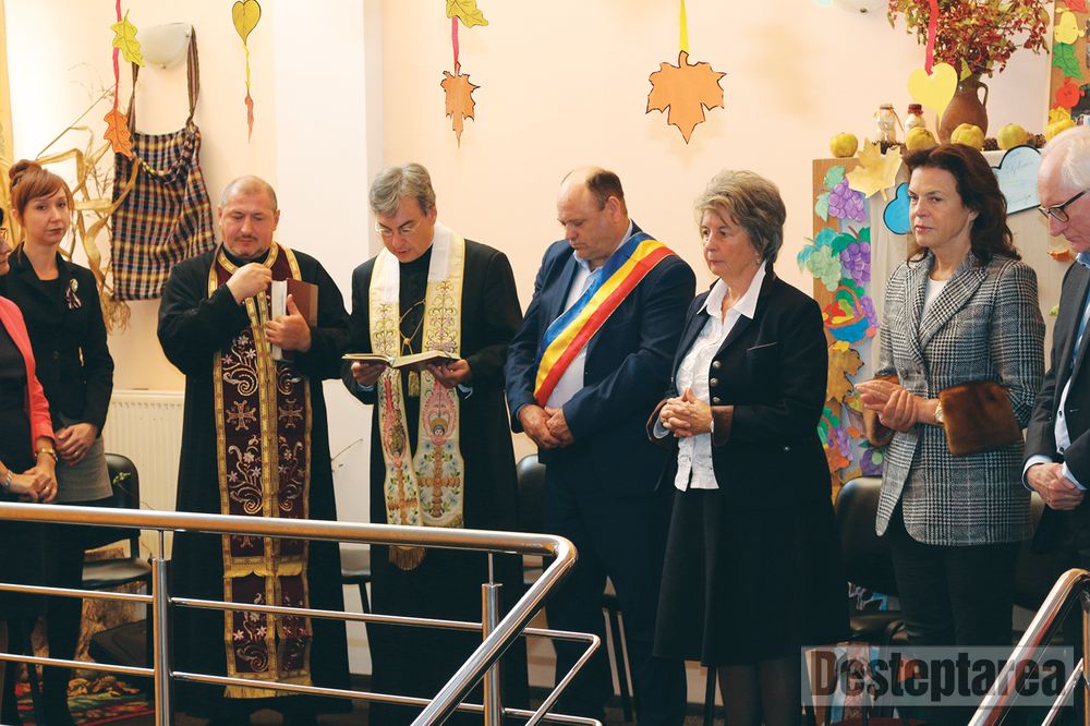 Casa a fost sfințită de pr. Vasile Busuioc, împreună cu pr. Jochen Folz, paroh de Vaduz, Liechtenstein. Oaspeții au vizitat și cele trei centre de zi din comuna Nicolae Bălcescu și i-au aplaudat pe copii, care pregătiseră pentru ei mici serbări.