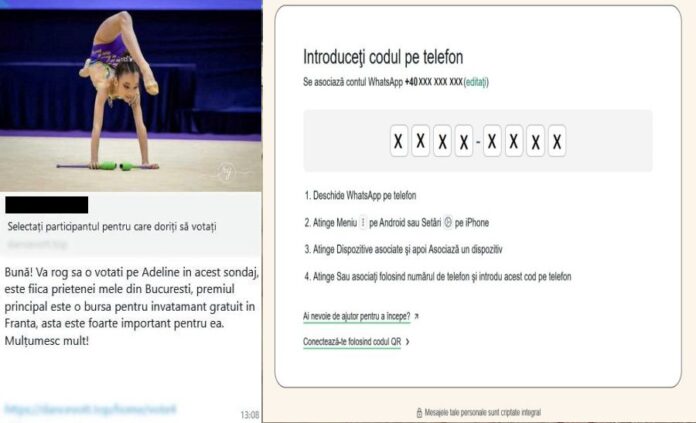 Astfel, folosind acea opțiune, autorii introduc o solicitare de asociere pe alte dispozitive a contului aferent aplicației de mesagerie al potențialei victime, prin introducerea numărului de telefon al acesteia.