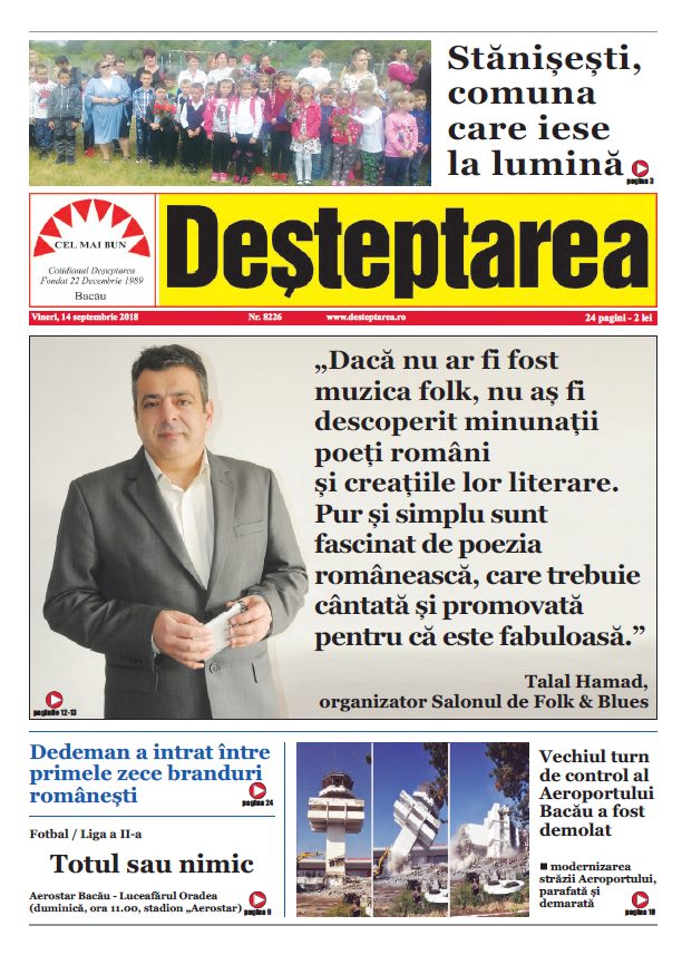 De curând, în Bacău a avut loc ediția a III-a a Salonului de Folk & Blues, evenimentul cel mai important din cadrul Zilelor Bacăului 2018. Festivalul de Folk și Blues a fost unul de amploare, desfășurat în trei zile de spectacole și cu prezența a peste 50 de artiști din țară și din Republica Moldova. În fața scenei amplasate în zona Palatului Administrativ, sute de băcăuani, și nu numai, au asistat plini de frenezie la recitalurile artiștilor favoriți. Evenimentul a fost organizat de către Centrul Național pentru Sănătate Permanentă Bacău, condus de omul de afaceri Talal Hamad, în parteneriat cu Primăria Municipiului și Consiliul Local Bacău. La scurt timp după încheierea festivalului, Talal Hamad a adresat o scrisoare deschisă tuturor băcăuanilor: