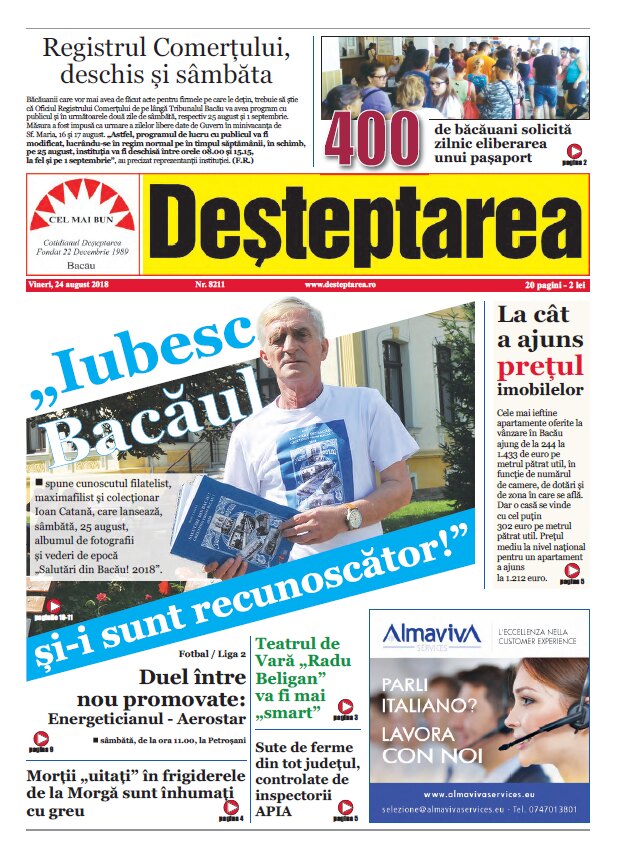 – spune cunoscutul filatelist, maximafilist și colecționar Ioan Catană, care lansează, sâmbătă, 25 august, albumul de fotografii și vederi de epocă „Salutări din Bacău! 2018”