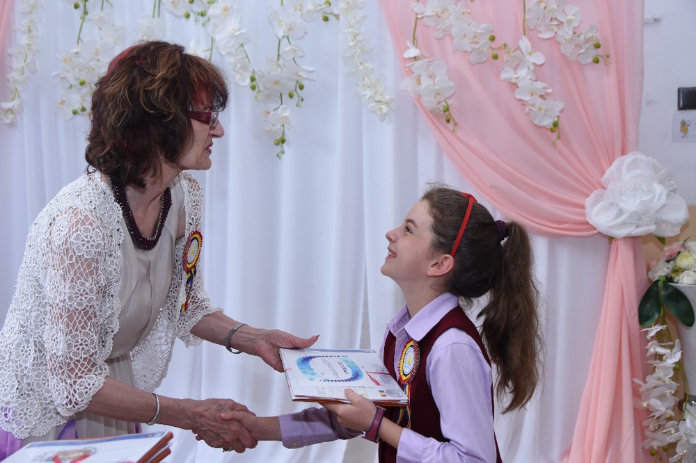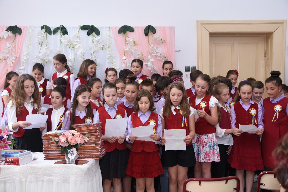 Printre participanţi, şi elevi din promoţia 2013, aflaţi acum în clasa a VIII-a, dar şi o fostă elevă din promoţia 2009, acum studentă, mulţi dintre coelgii ei fiind risipiţi prin ţară şi prin lume, la studii, însă au ţinut să adreseze, prin mijloace video, mesajul lor de felicitare actualilor elevi ai clasei a IV-a E, E de la Excelenţă, dar, mai ales fostei lor învăţătoare, Elena Rotaru. A fost cel mai frumos moment al întâlnirii, lacrimi ascunse cu greu s-au furişat pe obrajii învăţătoarei, care le-a îndrumat primii paşi în frumoasa aventură a cunoaşterii.