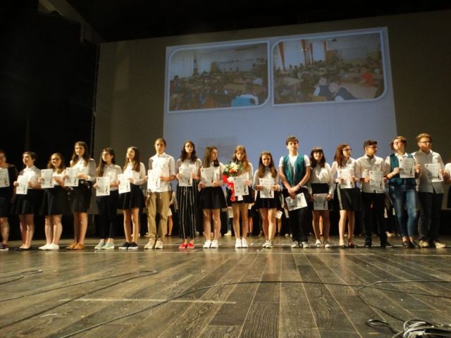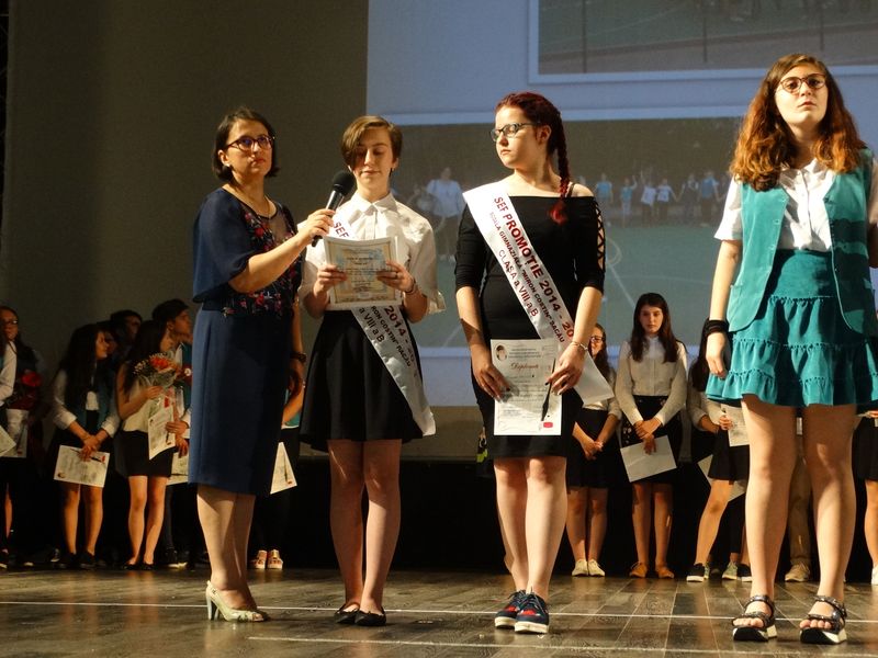 Tot acum elevele Cristina Iordache și Rebeka Aioanei, șefe de promoție 2018 ale școlii, au predat ștafeta colegilor mai mici, din clasele a VII-a, care au promis ca anul viitor vor urca din nou pe scenă după ce obțin rezultate cel puțin la fel de bune.