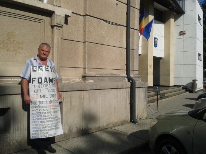 Administratorul unei firme din Tg. Ocna a intrat în greva foamei, disperat că după 13 ani de procese nu a reuşit să-şi recupereze o pagubă de 30 de milioane de euro. Bărbatul este hotărât să facă grevă în faţa Curţii de Apel Bacău până i se va face dreptate: „Acum, nu-mi rămâne de făcut decât să mă spânzur de zidul Curţii de Apel.”