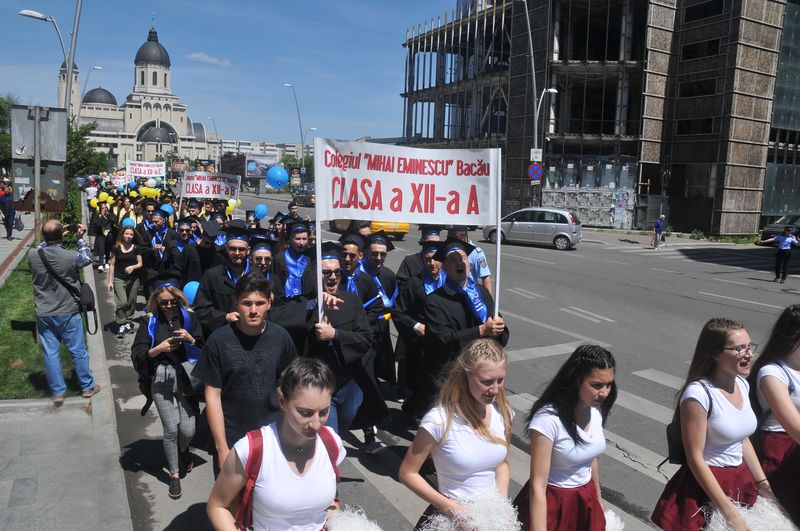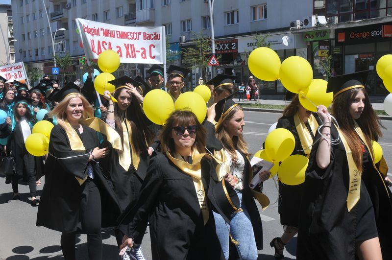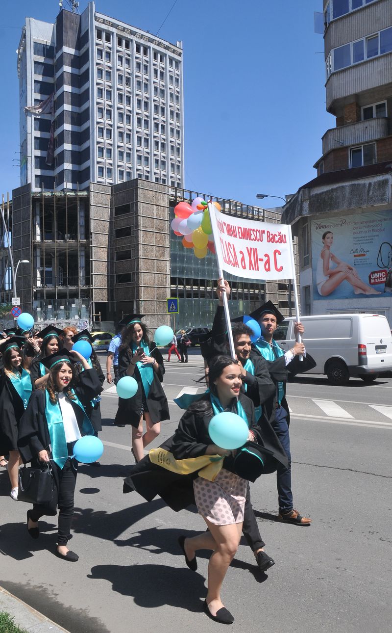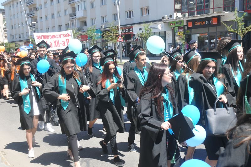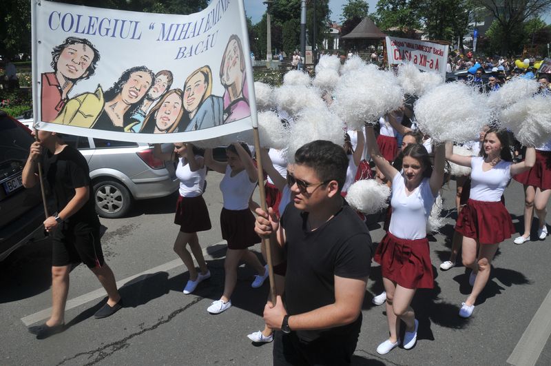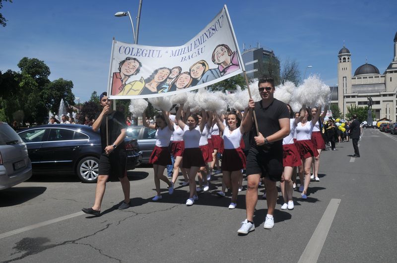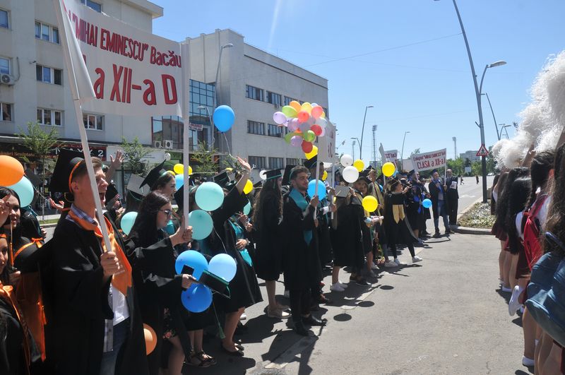 Pe la liceul Bacovia, astăzi Colegiul Ferdinand, nu a mai trecut de când l-a absolvit în 1983. Totul pare diferit, dar poarta și gardul arată la fel. Înainte de a intra, se oprește în fața Direcției Bazinale Siret privind clădirea de peste drum: „Aici, unde e pensiunea asta, îmi amintesc că era clădirea cu UTC-ul. Știu că odată am fost la Daciada, la tenis de masă. Făceam parte din lotul școlii. Eram copil. Am luat locul cinci pe țară și m-au adus aici și m-au felicitat. Nu știu cine era de la UTC, dar mi-amintesc că se intra prin spate.” Clădirile vechi și-au modificat destinațiile. „Sala de sport nu era aici! Mai este statuia lui Bacovia în spate, la intrarea profesorilor?”