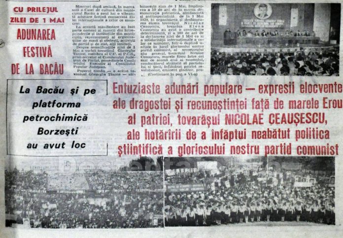 – De la Policlina Veche și fostul ONT. Așteptau pe str. Războieni și 9 Mai, defilau pe centru, iar când ajungeau în dreptul tribunei amplasate în fața Casei de Cultură, la microfon era anunțată întreprinderea, realizările și numele celor mai merituoși. Se spunea, de pildă, „Acum, prin fața dumneavoastră trec muncitorii de la IMU” și erau enumerate rezultatele și numele fruntașilor în muncă. Se defila în continuare până la Hotelul „Moldova”. Acesta era momentul important de dimineață. După defilare, urmau momentele de relaxare în familie, la iarbă verde, cu mici și bere, sau pe terase. Cei mai mulți se duceau în pădurile din jurul Bacăului și făceau grătare. Era un prilej de relaxare pentru că se muncea permanent, nu erau atâtea zile libere ca în prezent.