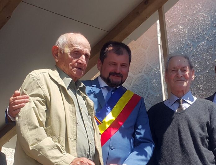 Veteranul Ion Procopie, alături de Valentin Vieru, primarul Moineștiului, și colegul său, veteranul Ștefan Asandei