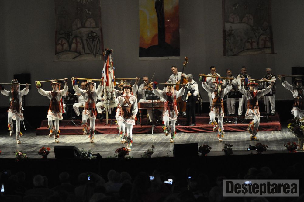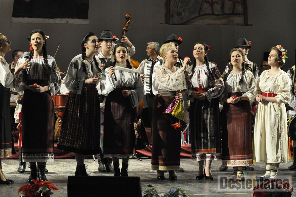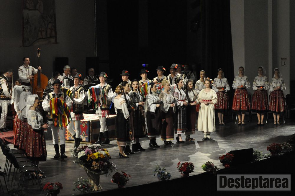 Timp de două ore, au evoluat pe scenă solişti din Bacău, Olt, Chişinău, Botoşani, dansatorii de la „Busuiocul”, cu suite din toate regiunile ţării, ca semn şi însemn al sărbătoririi Centenarului Marii Uniri.