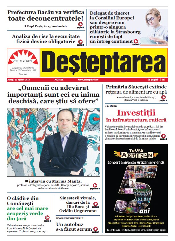 – În Prefaţa la recenta ta carte, „Ucenic la iconari” (Editura Vicovia 2017), Daniela Şontică apreciază cartea ca „o mărturisire de credinţă, o manifestare de normalitate şi firesc. (…) Marius Manta arată constant un ataşament faţă de autenticul românism, de valorile nepieritoare ale satului românesc, în care mai poate fi găsită licărind o lumină şi în zilele noastre, respingând prezentul care sufocă prin strălucirile falsei modernităţi”. Eşti profesor, critic literar, publicist, om al cetăţii, de ce nevoia unei asemenea cărţi, singulară în peisajul literar al Bacăului?
