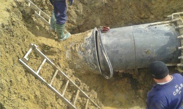 Vă putem informa cu exactitate că avaria care a avut loc pe conducta de aducțiune în zona localității Ardeoani, s-a produs prin demufarea (smulgerea din îmbinare) a unui tub din FGM DN 800mm, că urmare a deplasării terenului (alunecare), în urma precipitațiilor abundente din ultima perioadă.